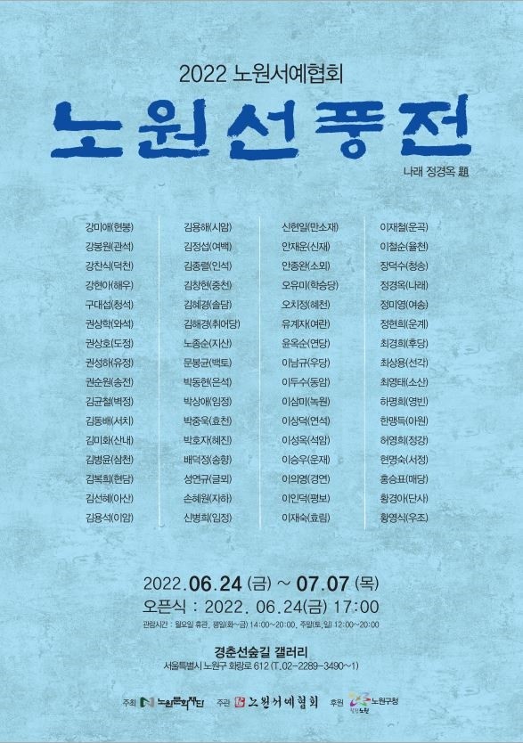 이번 <노원선풍전>에는 노원서예협회 회원 총 70여 명이 참여했다. 단선 부채부터 접선까지 다양한 모양의 부채에 회원들의 글과 그림이 더해진 개성 넘치는 부채작품 200여 점을 선보인다.