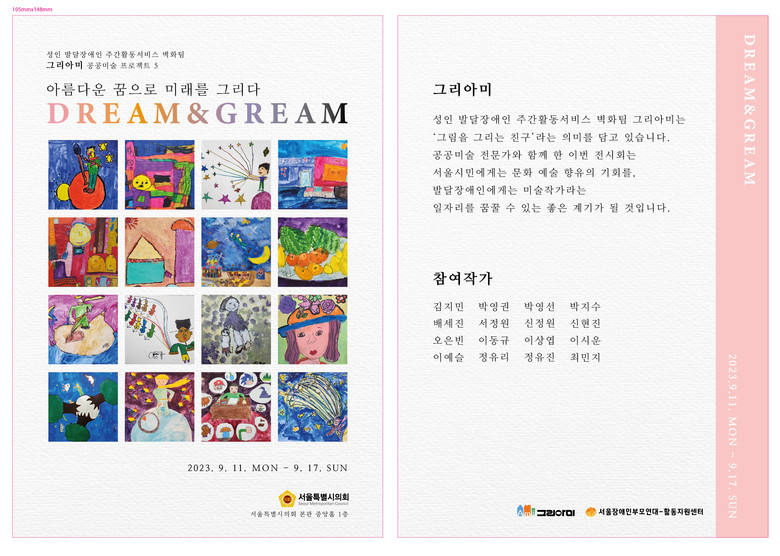 이번 전시는 지난 벽화 작품 전시와 갤러리 기획전시에 이어 세 번째 행사로서 16인의 그리아미(그림 그리는 친구들) 작가들의 그림 작품을 통해 장애인의 일자리 창출과 문화예술 진흥 및 지원책 마련을 위해 개최되었다.