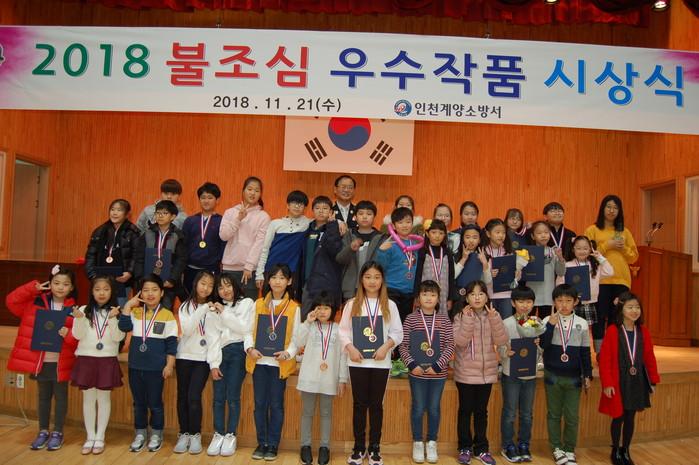 이번 시상식은 불조심 작품 공모전에 접수된 상상화ㆍ포스터 2개 분야 156점의 작품에 대하여 전문 심사자의 공정한 심사를 통해 각 분야 우수작을 선정하여 진행되었으며, ▲상상화 대상-효성동초등학교 이수민 ▲포스터 대상-길주초등학교 박소연 학생을 비롯해 30명의 학생이 수상하는 영광을 안았다. 또한 부대행사로 마술쇼, 페이스페인팅, 안전체험 행사 등을 진행해 시상식에 참석한 학부모와 학생들에게 큰 호응을 얻었다.