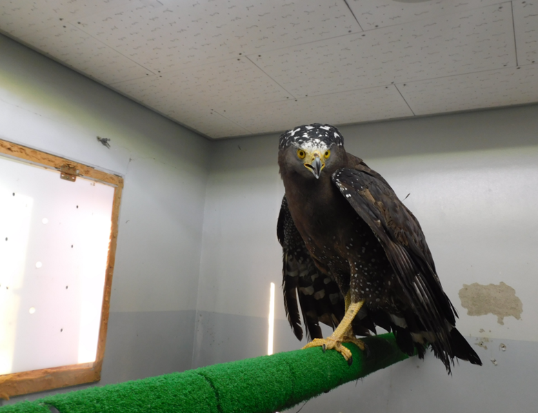 센터의 야생동물 전용 입원실에서 치료받은 다음, 현재는 비행 활동 준비를 위해 넓은 회복실로 옮겨져 회복 중이다.