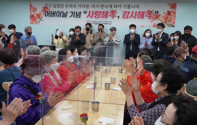 전 직원이 가슴에 카네이션을 달아드리고 감사함을 담은 노래와 함께 선물을 전달하는 시간을 가졌다. 또 인천 미소모연회와 푸른나래봉사단 도움으로 소불고기, 떡 등 특별한 식사와 함께 화장지, 마스크, 손소독제 등 생필품과 감염예방물품 꾸러미를 전달했다.