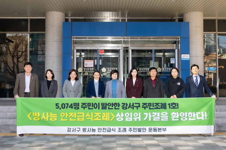 이 조례는 강서구 내 어린이집 등 급식에 방사능 등 유해물질로부터 안전한 식재료가 사용될 수 있도록 필요 사항을 규정하기 위해「주민조례발안에 관한 법률」에 의거 주민조례 청구권자 5,074 명의 서명을 받아 지난 2022년 2월 23일 강서구의회로 제출되었다.