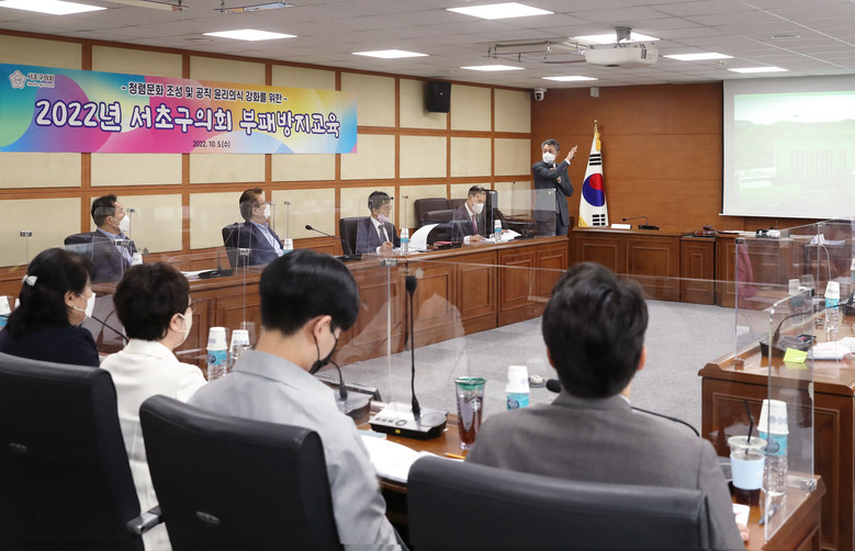 [서초구 세계타임즈=이장성 기자] 서초구의회(의장 오세철)는 5일 구의회 3층 제1위원회실에서 청렴 문화 조성 및 공직 윤리의식 강화를 위한 교육을 실시했다.