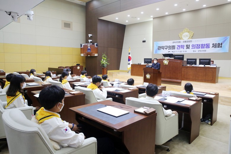 [관악구 세계타임즈=이장성 기자] 관악구의회(의장 임춘수)는 11월 11일 15시 구의회 4층 본회의장에서 리틀강감찬 단원인 관내 초등학교 6학년 학생 13명이 참여한 모의의회를 개최했다.