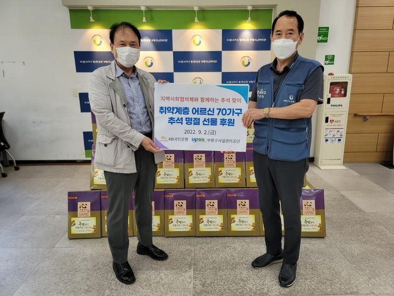 [부평구 세계타임즈=김광수 기자] 부평구노인복지관(관장: 최민수)은 민족의 최대 명절인 추석을 맞아 KB국민은행과 한국기아대책과 진행하는 ‘추석맞이 전통시장 사랑 나눔’ 행사의 일환으로 후원물품(70BOX, 420만원 상당)을 전달 받았다고 밝혔다.