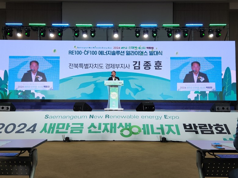 전북자치도는 21일 군산 새만금컨벤션센터에서 「특별한 만남, 새로운 시작, RE100·CF100 에너지 솔루션 얼라이언스!」 슬로건 아래 2024 신재생에너지 박람회와 함께 RE100·CF100 에너지 솔루션 얼라이언스 발대식을 개최했다고 밝혔다.