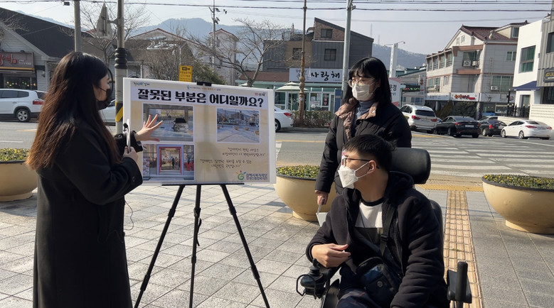 해당 장애인식개선캠페인은 김해시장애인종합복지관에서부터 수리공원까지 이동하며 진행됐다. 일상생활 중 비장애인의 시각으로는 알 수 없었던 장애인의 불편 사항을 인식할 수 있는 기회를 제공하고, 장애인의 관점에서 지역사회를 바라볼 수 있도록 돕고자 ‘장애인의 입장에서 바라보는 잘못된 부분 찾기’와 인터뷰를 진행해 지역주민의 장애인식개선을 도모했다.