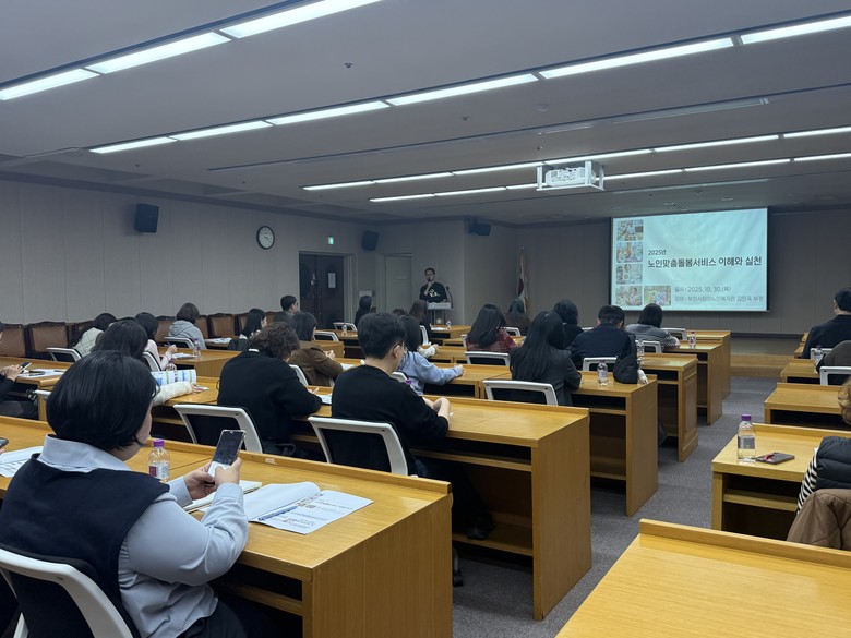 이어진 강의에서는 김민욱 원미노인복지관 부장이 노인맞춤돌봄서비스에 관해 소개했다. 특히, 고독사 및 우울감 위험이 큰 어르신을 발견해 통합돌봄사업과 연결하고 일상 회복을 지원한 사례를 소개하며, 돌봄사업 간 긴밀한 협업의 필요성을 강조했다.