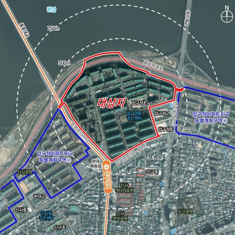 현재 압구정동 일대에서 재건축을 추진 중인 4개 구역(2~5구역) 중 3구역이 마지막으로 금번 도시계획위원회 수권분과소위원회 심의를 통과했다.