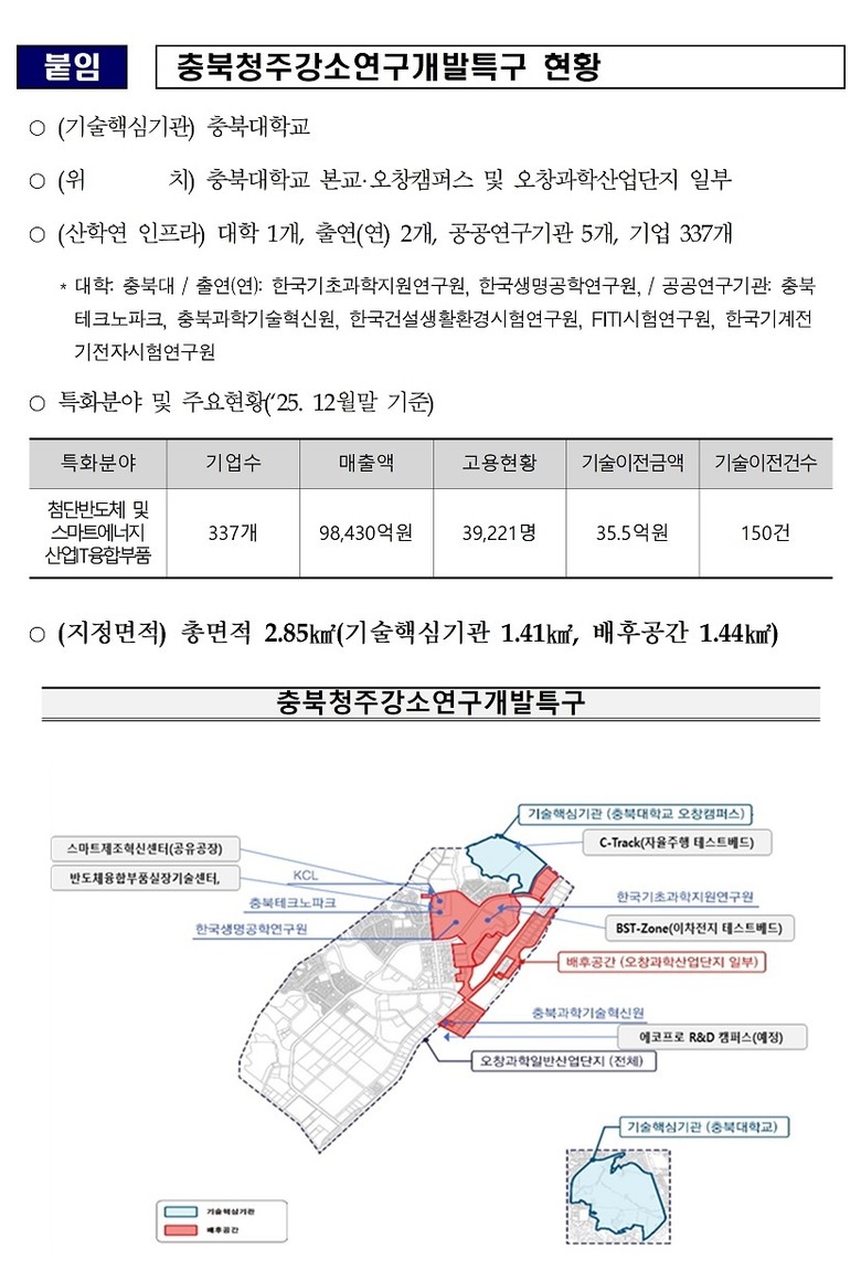 한편, 충북청주강소연구개발특구는 2020년 사업 시작 이후 공공기술의 이전과 기술사업화를 중점에 두고 기업 성장과 지역 산업 활성화를 꾸준히 이끌어 왔다.