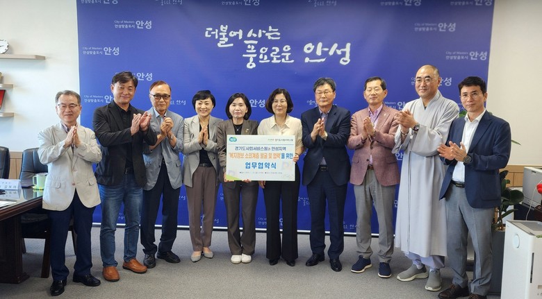 협약에는 안성시(시장 김보라), 안성시지역사회보장협의체(민간공동위원장 김동성), 안성시사회복지협의회(회장 송용현), 대한노인회 안성시지회(회장 송근홍), 안성시노인복지관(관장 가섭스님), 안성시장애인복지관(관장 김덕수), 안성종합사회복지관(관장 박희열), 수행기관인 안성시행정동우회(회장 조성열)등 총 8개 기관이 참여했다.