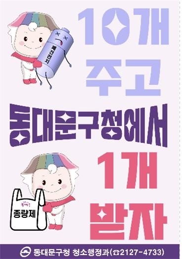 이필형 동대문구청장은 “다 쓰고 남은 건전지를 전용수거함에 넣기 번거로워 계속 모으기만 했다면 이번 기회에 종량제 봉투로 교환하여 환경보호도 실천해보고 살림에도 보탬이 되길 바란다.”며 “앞으로도 자원의 선순환을 촉진하고 생활폐기물의 재활용률을 높이기 위한 다양한 사업을 도입하겠다.”고 전했다.