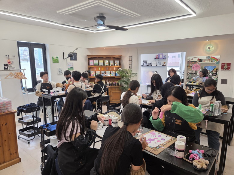 | ▲ 말레이시아 남쿠칭시 청소년 대표단이 전통 공예 체험을 하고 있다. |