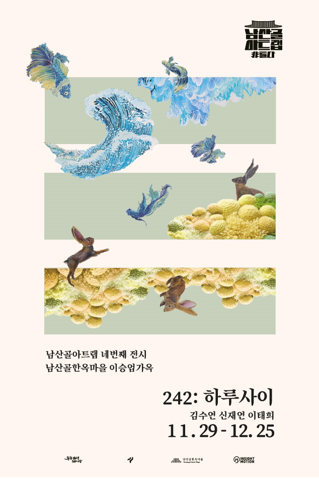 금년 마지막 전시인 <242:하루사이>展은 ‘Studio ON’(단체명)의 작품으로 11월 29일(화) 부터 12월 25일(일)까지 진행된다. ‘자연과 어우러져 살아가는 삶’을 주제로 한옥에서 이질적인 금속소재를 이용한 작품을 이승업 가옥에 전시할 예정이다.