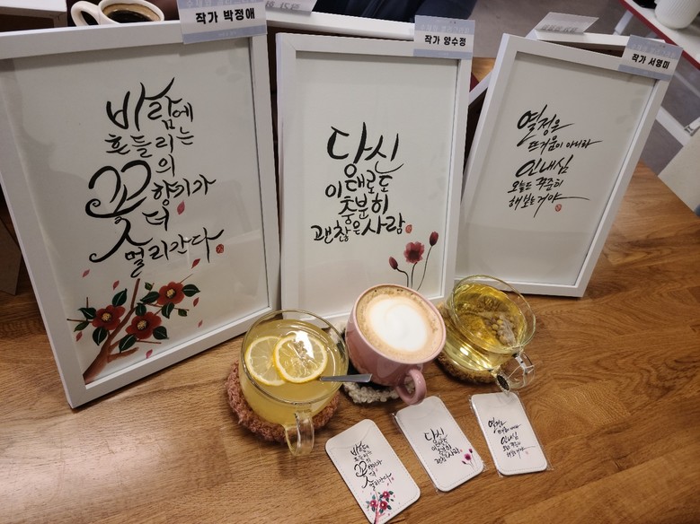 ▲‘시니어 문화나눔 페스티벌’에서 어르신들이 직접 만든 작품이 전시되고 있는 모습 | ▲어르신들이 동아리에서 직접 만드신 손글씨(참고 사진) |