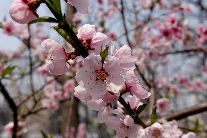 ‘고향의 봄’ 동요에도 등장하는 복숭아꽃은 복사나무 꽃으로 꽃대가 있긴 하지만 매우 짧다.