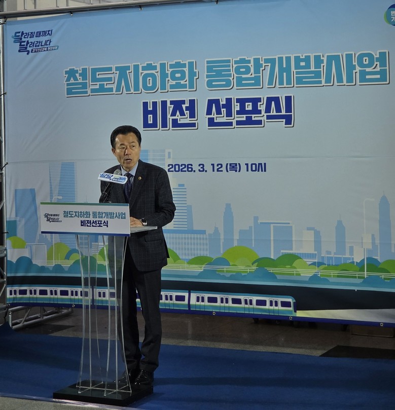 [경기도 세계타임즈=송민수 기자] 경기도의회 건설교통위원회 김성수 의원(더불어민주당, 안양1)은 12일(목) 안양역에서 열린 ‘철도지하화 통합개발사업 비전선포식’에 참석하여 경부선 안양 구간의 조속한 철도지하화사업 대상지 선정을 촉구하고 강력한 추진 의지를 피력하였다.