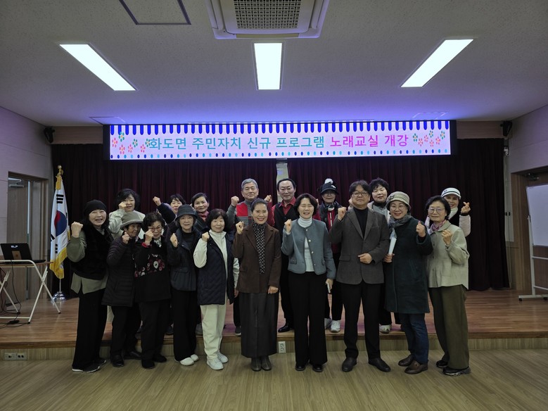 조순이 화도면장은 “주민 누구나 즐겁게 배우고 소통할 수 있는 공간이 될 수 있도록 행정적 지원을 아끼지 않겠다”며, “노래교실이 주민 화합과 활력 증진의 계기가 되길 바란다”고 말했다.
