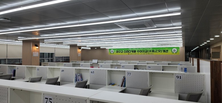 새롭게 조성된 스터디카페 수어지교는 대구광역시교육청 영역단위 공간혁신사업으로 2억 4천만원의 예산투입과 대구고등학교총동창회 15회 동기회의 책상과 의자 등 3,000여만 원 상당의 물품 지원을 바탕으로 구축되었으며, 기존의 자습 공간을 학생 중심의 학습환경으로 개선하여 학생들이 스스로 학습 계획을 세우고 몰입할 수 있도록 설계되었다.