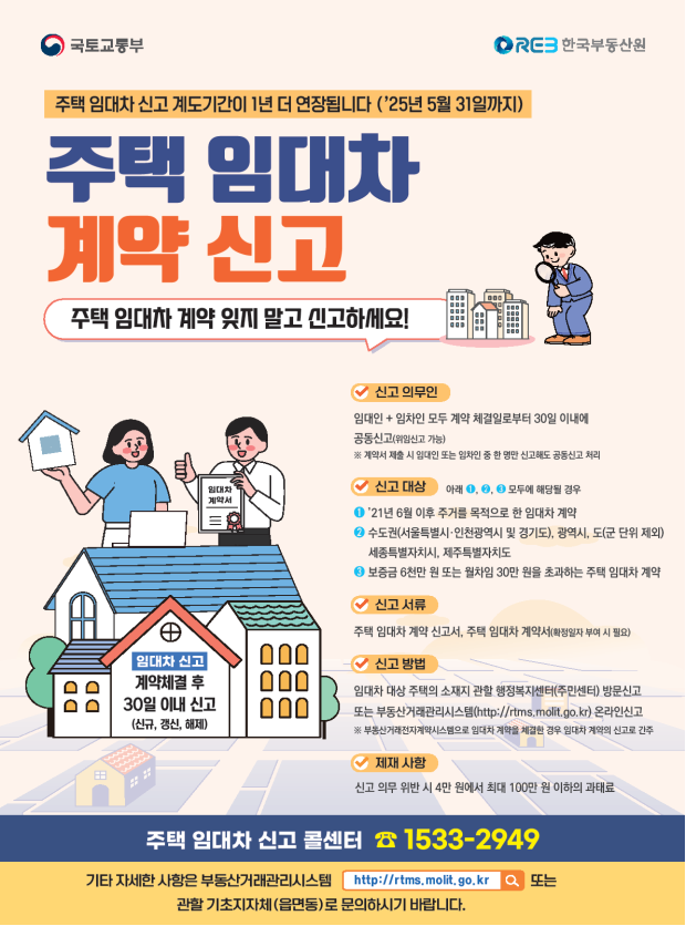 주택임대차 신고제의 대상은 보증금 6천만 원 또는 월세 30만 원을 초과하는 주택임대차의 신규·변경·해지 계약 등으로, 실거래 정보를 제공함으로써 임차인의 권리를 보호하기 위해 2021년 6월부터 시행됐다.