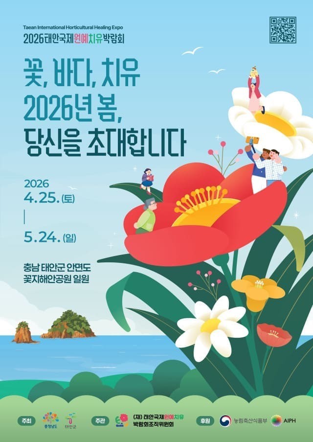 건강한 미래와 원예·치유를 주제로 한 ‘2026 태안국제원예치유박람회’가 4월 25일부터 5월 24일까지 꽃지해안공원 일원에서 펼쳐진다.
