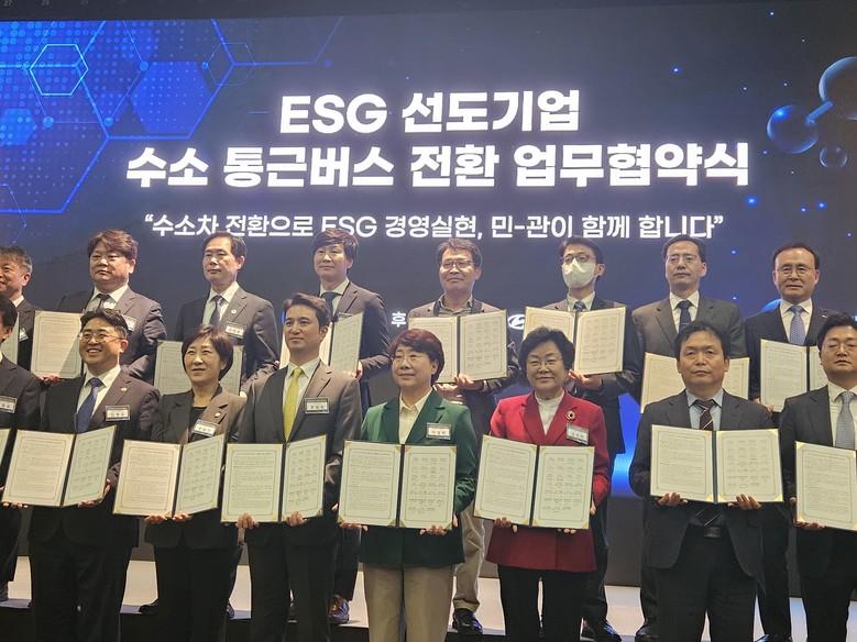 협약의 주요 내용은 2026년까지 2천대 이상 수소버스로 전환하기 위해 △환경부는 수소버스 구매보조와 성능보증기간 확대 등 정책적, 재정적 지원 △경북 등 지자체는 구매보조금 확보와 수소충전 기반 확충 △대기업은 통근버스를 수소버스로 전환 노력 △운수 사업자는 내연기관 버스를 수소버스로 신속하게 전환 △현대자동차는 차질 없는 수소버스 생산.공급 등이다.