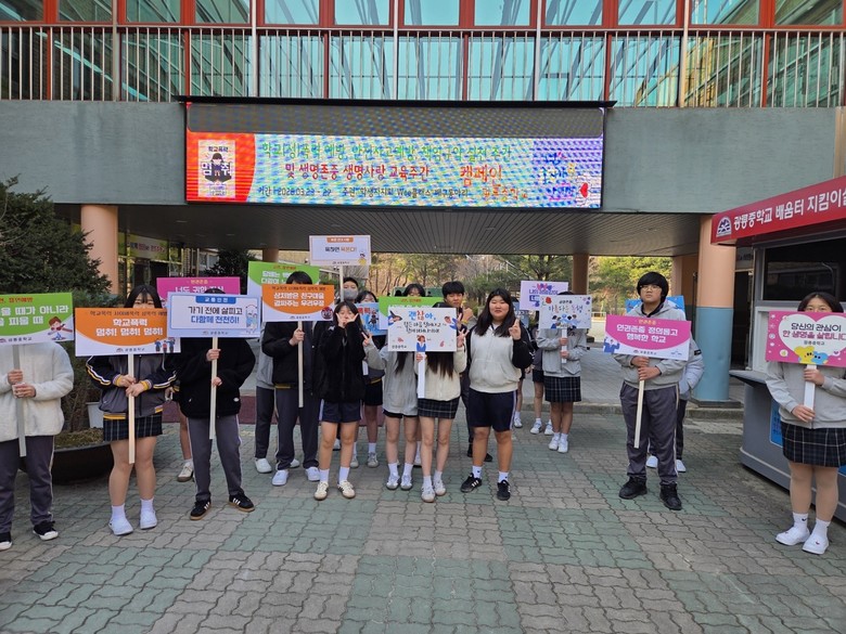 [남양주시 세계타임즈=송민수 기자] 광릉중학교(교장 민연식)가 신학기를 맞이하여 교육공동체가 함께 참여하는 활동형 주간 행사로 학생 주도와 참여형 학교(성)폭력ㆍ안전사고 예방 및 생명 존중 . 생명 사랑 주간(3.23.~3.27.) 프로그램을 운영하였다.