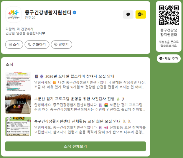 이번 카카오톡 채널 개설은 지역 주민의 건강증진과 생활 개선을 목표로 추진 중인 다양한 건강 관련 프로그램에 대한 정보 접근성을 높이고, 최신 소식을 신속하게 전달할 수 있는 소통 창구를 마련하였다는 점에서 의미가 있다.