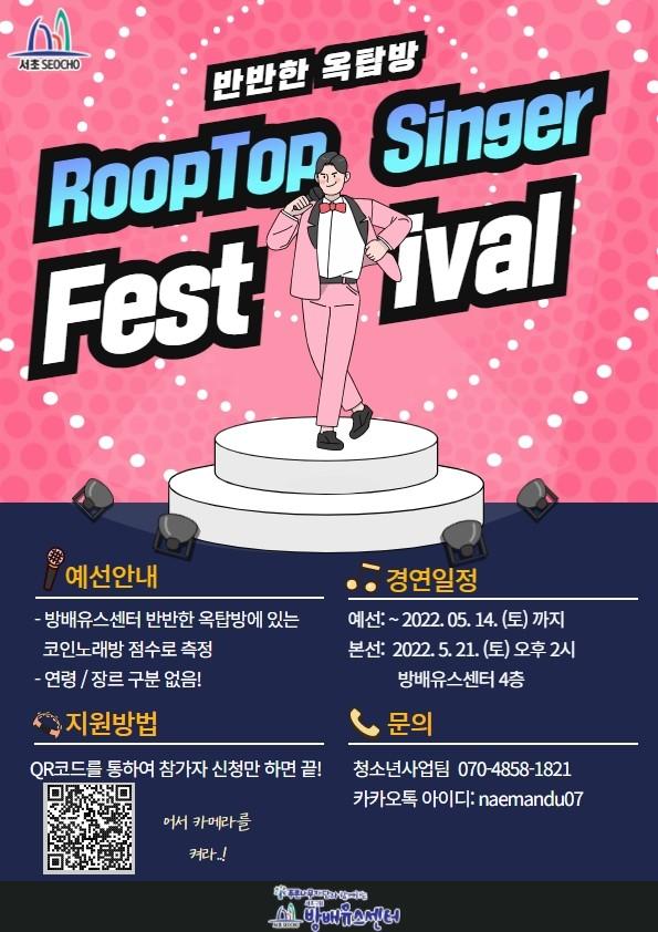 서초구 최고의 노래방가수를 뽑는 ‘루프탑싱어’는 센터의 반반한 옥탑방에 있는 코인 노래방 점수로 예선전을 통과한 최종 15인이 펼치는 노래대회이며 청소년의 다양한 끼와 재능을 마음껏 뽐낼 수 있다.