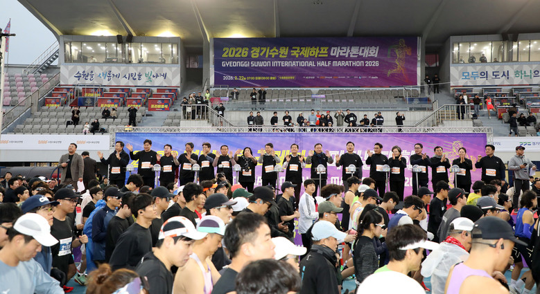 [수원시 세계타임즈=송민수 기자] 수원특례시의회는 2월 22일 오전 수원종합운동장에서 열린 「2026 경기수원 국제하프마라톤대회」에 참석해 시민들과 함께 생활체육의 가치를 나누고 대회의 성공적인 개최를 응원했다.