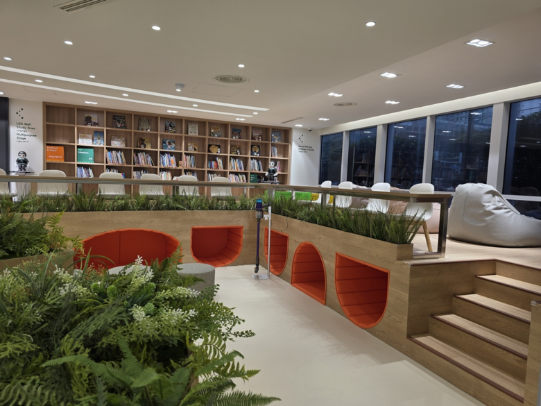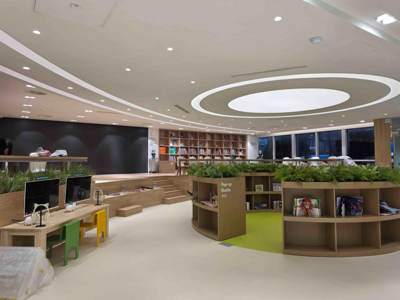 공간 조성은 부산글로벌빌리지 행정동 1층 노후 홍보관을 리모델링하여 ▲ 인공지능(AI) 기반의 엘이디(LED) 미디어 아트 ▲ 가상 인공지능(AI) 튜터* ▲ 실감형 체험 공간 ▲ 디지털 독서 콘텐츠 등의 인공지능(AI) 기반의 디지털 콘텐츠를 구축하여 아이들이 놀면서 영어에 자연스럽게 몰입할 수 있는 스마트 학습 공간으로 탈바꿈했다.