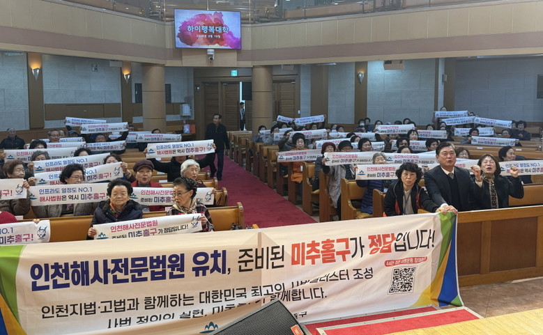 [미추홀구 세계타임즈=심하린 기자] 인천 미추홀구(구청장 이영훈)는 지난 19일 학익감리교회에서 ‘인천해사국제상사법원(이하 해사법원)의 미추홀구 유치’를 위한 홍보 및 서명운동을 전개했다.