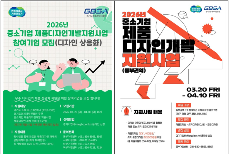 경기도와 경기도경제과학진흥원(이하 경과원)은 ‘2026년 중소기업 제품디자인개발 지원사업’ 참여기업을 모집한다고 20일 밝혔다.