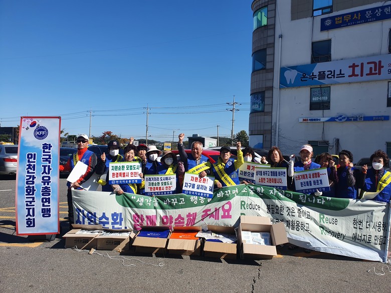 [강화군 세계타임즈=심하린 기자] 한국자유총연맹 강화군지회(회장 박봉식)는 17일 길상면 온수리 광장에서 ‘자원순환실천운동 캠페인’을 전개했다.