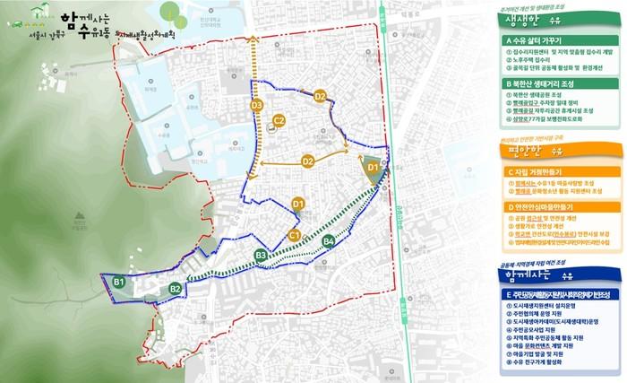 “생생한 수유”는 단위사업으로 집수리지원센터 운영, 노후주택 집수리, 골목길 단위 공동체 활성화 등을 통해 다양한 주택공급 및 정비사업의 대안을 제시하는 “수유 삶터 가꾸기”와 북한산 생태공원 조성, 빨래골 주차장 환경개선, 보행친화도로 설치 등의 생태적 주거환경을 조성하는 “북한산 생태거리 조성”으로 계획하였다.