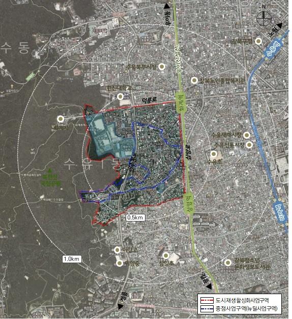 수유1동 일대는 `16년 희망지 사업을 통해 `17년 2월 서울형 도시재생 2단계 사업지역으로 선정되었으며, 이후 주민협의체 운영, 도시재생아카데미 운영 등을 통해 재생사업에 대한 주민 역량을 키워가고 있다.