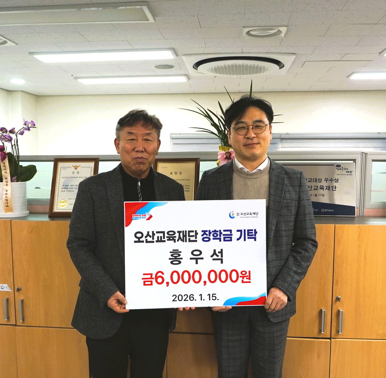 이영빈 오산교육재단 상임이사는 “자신이 성장한 지역사회에 기부로 환원하는 모습은 매우 의미 있고 좋은 본보기”라며 “기탁해 주신 장학금은 학생들이 꿈을 키우고 미래를 설계하는 데 소중히 활용하겠다”고 말했다.