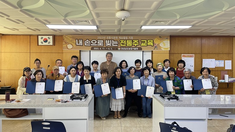 - 전통주의 이해와 가치, 우리 쌀을 활용한 전통주 제조 실습교육을 통해 지역 전통주 리더 양성 [세계타임즈=경남 최성룡 기자] 경상남도농업기술원(원장 정찬식)은 우리 술의 우수성과 제조방법 보급·전수로 지역 전통주 리더를 양성하고, 전통 식문화를 계승하는 ‘내 손으로 빚는 전통주 교육 수료식’이 열렸다고 밝혔다.