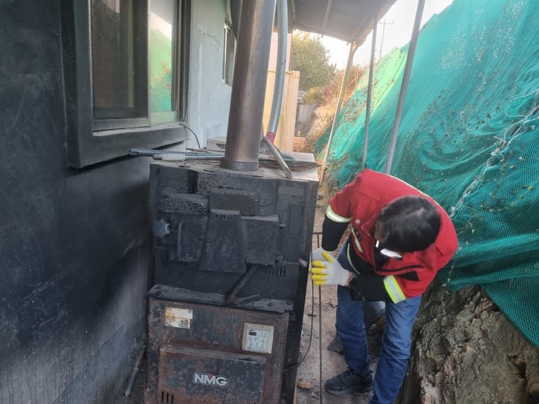 | ▲ 5 시 관계자가 산불 예방을 위해 화목보일러를 점검하고 있다 |