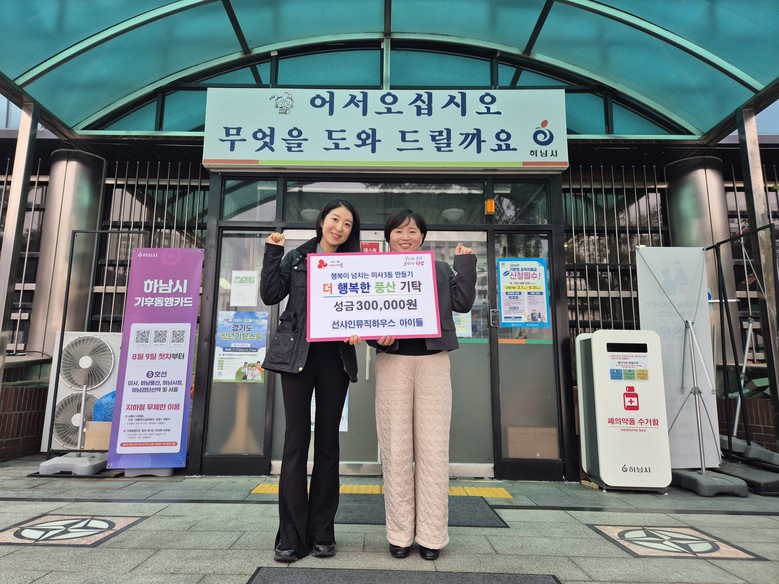 [하남시 세계타임즈=송민수 기자] 경기 하남시 미사3동 소재 선샤인뮤직하우스(원장 노가현)는 지난해 8월 성금 40만 원을 기탁한 데 이어, 올해 3월 6일에도 미사3동 행정복지센터를 방문해 관내 저소득 어린이를 위한 30만 원을 추가로 기탁하며 지속적인 나눔을 실천했다.