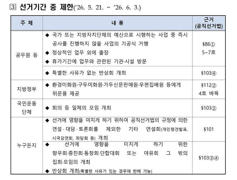 특히 공직자가 사회관계망서비스(SNS)를 통해 선거에 영향을 미치는 행위와 주요 선거법 위반 사례를 전파해 유사 사례가 발생하지 않도록 예방 활동도 병행할 방침이다.