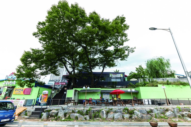 그림11. 고목(古木)만 남은 채 조개구이집이 된 월파정 터의 현재 모습 |