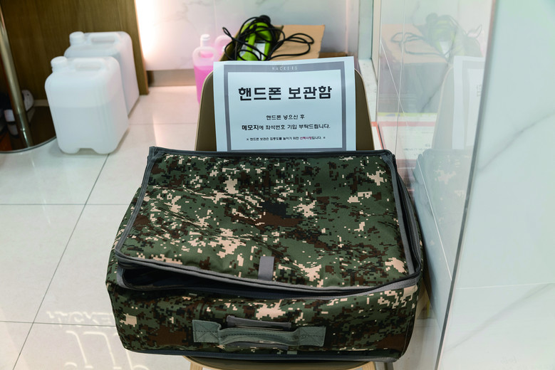 그림17. 노량진 대형학원이 운영하는 관리형 독서실 내부 | 그림18. 관리형 독서실 입구에 비치된 핸드폰 보관함 |