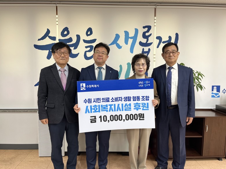 [수원시 세계타임즈=송민수 기자] 수원시민의료소비자 생활협동조합이 “도움이 필요한 취약계층과 사회복지시설에 전달해 달라”며 수원시에 1000만 원을 기부했다.