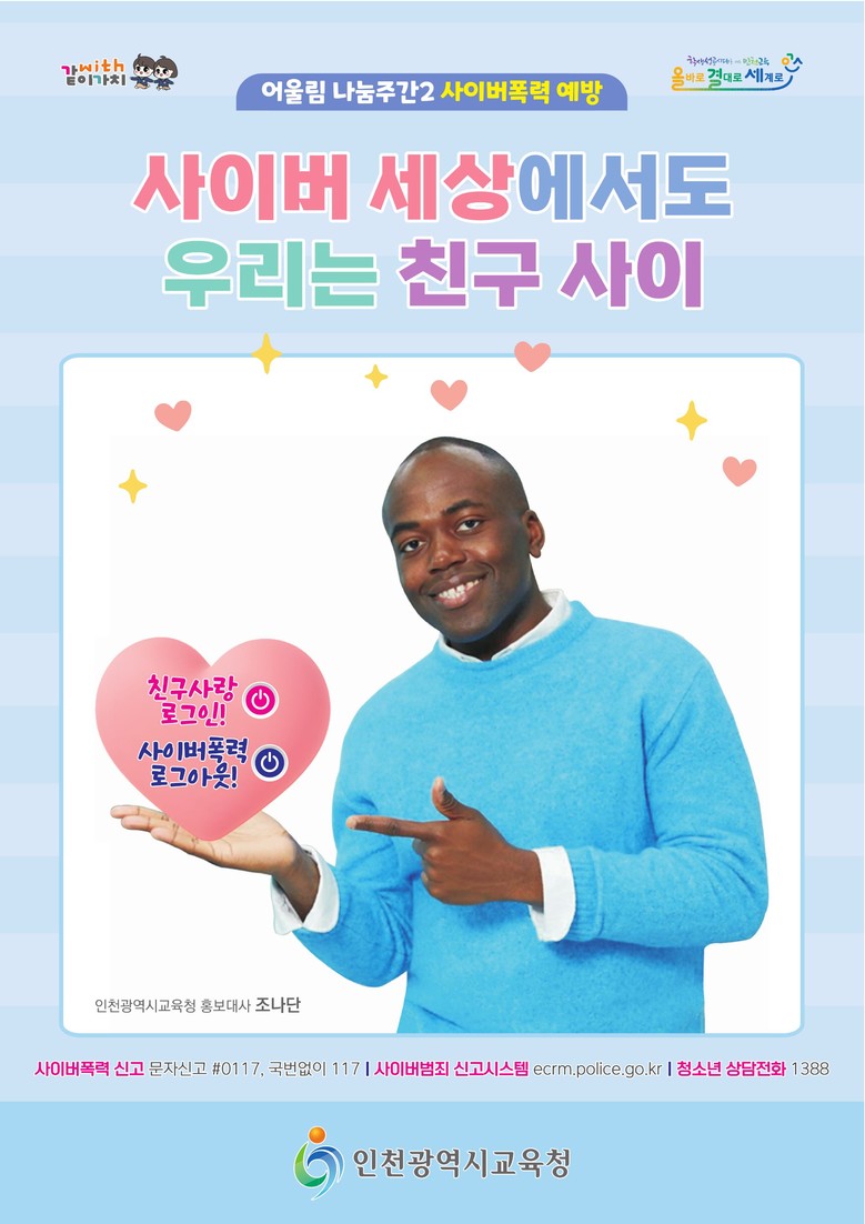 또한 인천경찰청 사이버수사과와 학교전담경찰관(SPO)의 ‘찾아가는 예방교육’을 실시하고 월드비전, 푸른나무재단 등과 협력해 보드게임, 웹툰 활용 교육, 실천 인증 이벤트, 다짐 챌린지, 예방 공모전 등 학생 참여형 프로그램도 운영한다.