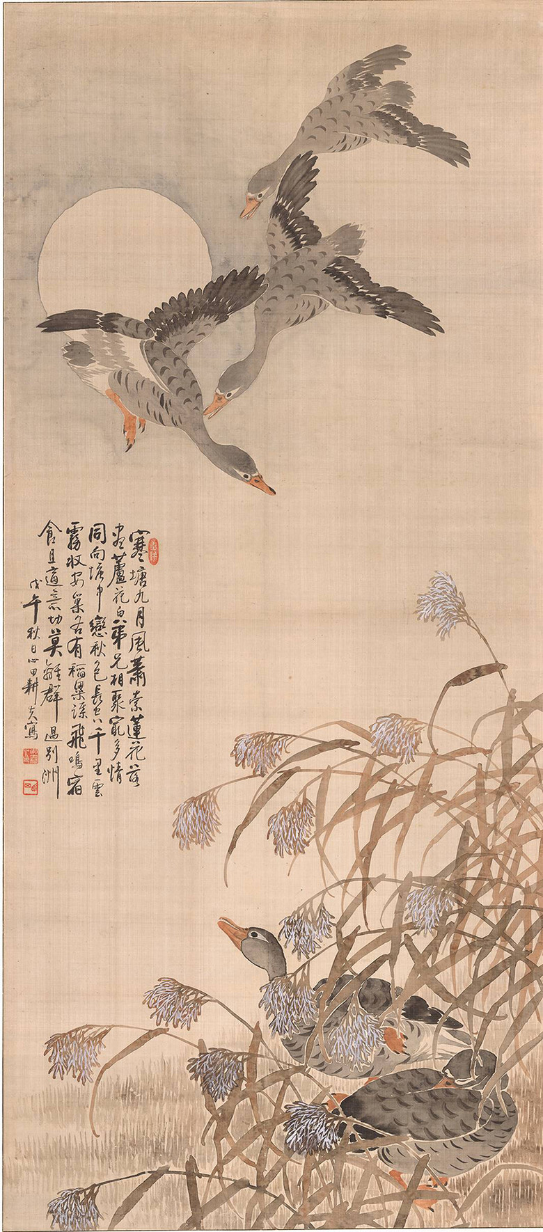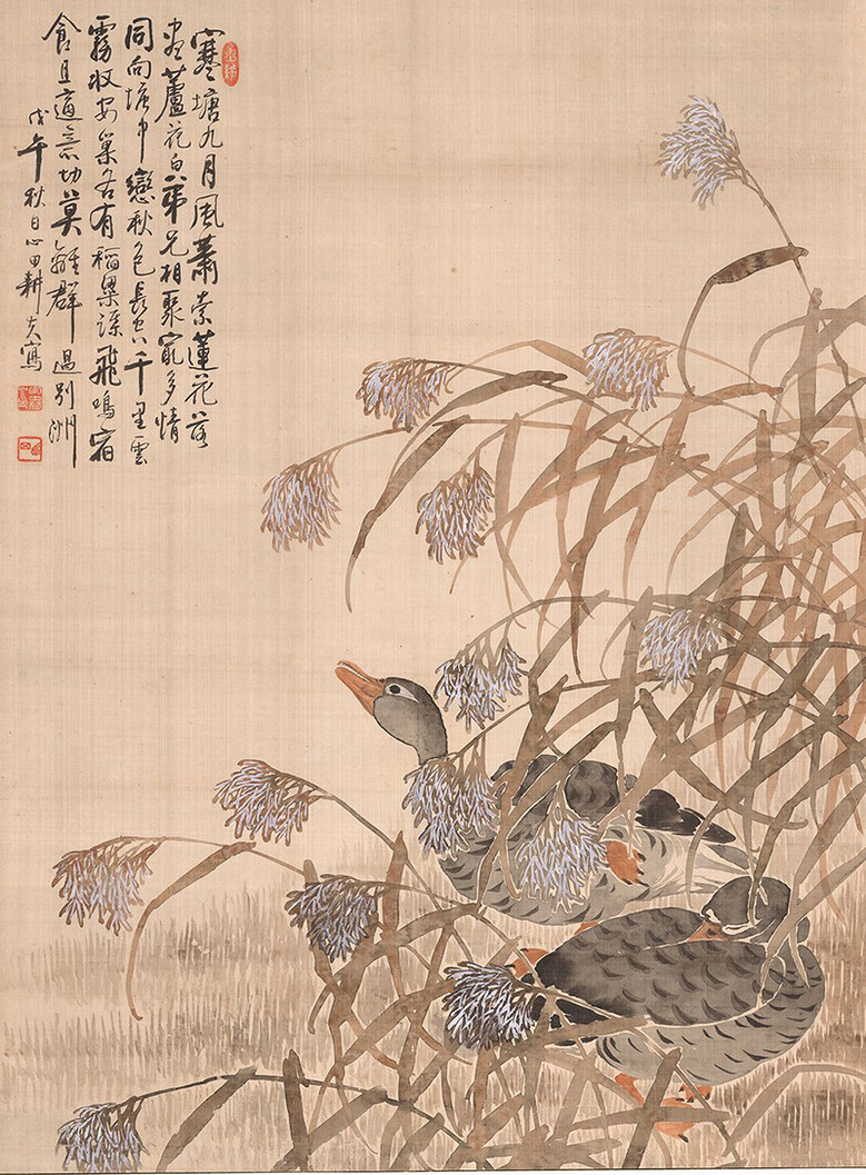 이번 특별전의 대표작 <인왕제색도> 자리를 <추성부도>가 이어받았다.(도1) 이 작품은 당대 삶의 모습을 실감나게 포착한 풍속화가로 알려져 있는 김홍도가 문학 작품을 그림으로 표현하는 데 탁월한 기량을 지녔음을 보여준다. 그는 중국 북송의 문인 구양수(歐陽脩, 1007~1072)가 늦가을 저물어가는 자연 현상과 인생의 무상함을 연결시켜 읊은 산문시 ‘추성부’의 내용을 구체적으로 묘사했다. 아울러 늦가을의 메마름과 쓸쓸한 정서를 작품에 오롯이 담아내 관람객의 마음에도 늦가을의 정서를 전해주는 걸작을 남겼다.