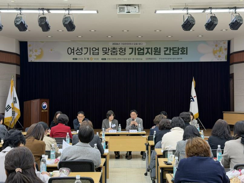 [강원도 세계타임즈=김민석 기자] 강원특별자치도(도지사 김진태)는 3월 18일(수), 강원지방중소벤처기업청 별관 1층 대회의실에서 도내 여성기업의 자생력을 높이고 경쟁력을 강화하기 위한 ‘2026년 여성기업 맞춤형 기업지원 간담회’를 개최했다.