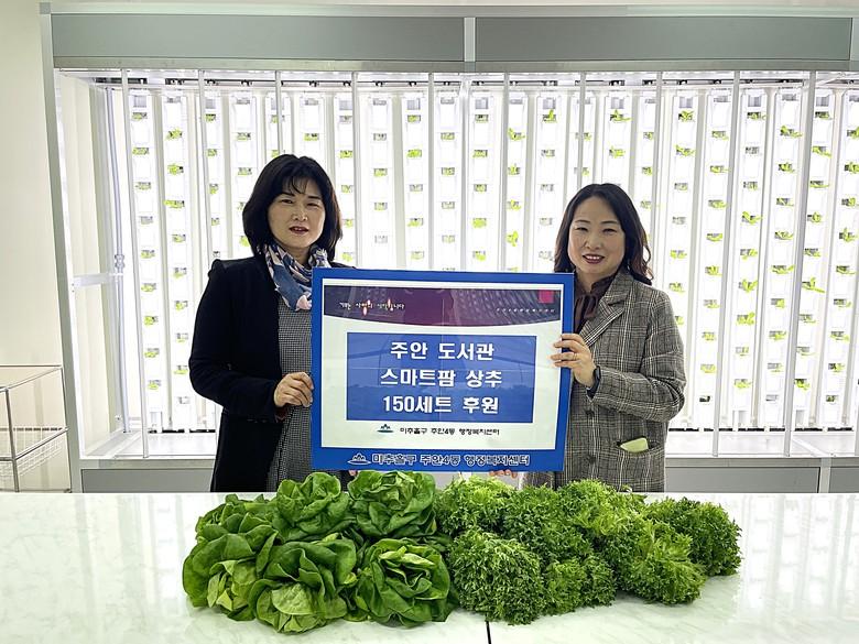 주안도서관은 스마트팜을 운영하며 시민들에게 다양한 작물 수확 체험과 스마트팜 관련 교육 프로그램을 제공하고 있으며, 이번 기증은 지난해에 이어 두 번째로 진행되었다.