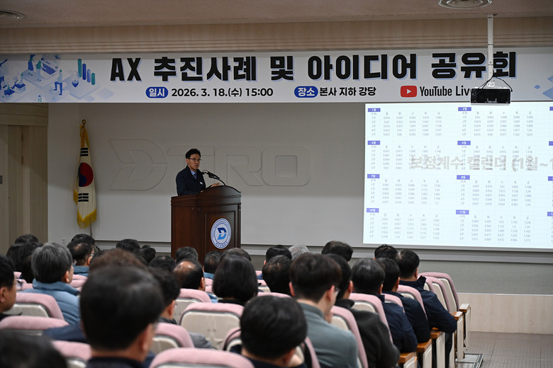 이번 공유회는 공사 내 AI 활용 사례 확산과 현장에서 적용 가능한 인공지능 전환(AX) 추가 과제 발굴을 위해 마련됐으며, 공사 유튜브 채널 ‘사통팔달 DTRO TV’를 통해 실시간으로 중계됐다.