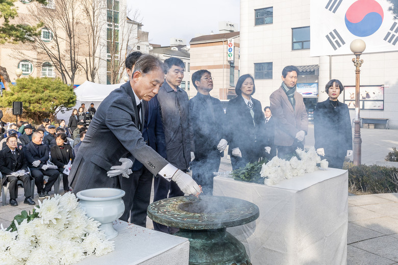 - 헌화·독립선언서 낭독·만세 삼창 등 추모 중심으로 엄숙히 진행 - [계양구 세계타임즈=심하린 기자] 인천광역시 계양구(구청장 윤환)는 제107주년 3·1절을 맞아 1일 오전 장기동 황어장터 3.1만세운동 역사문화센터 광장에서 기념행사를 개최했다.